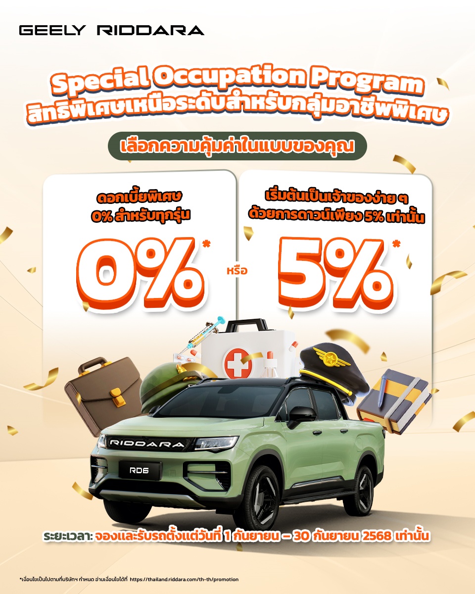Details and Disclaimers of the special offer under RIDDARA Campaign for special occupations to buy the RIDDARA RD6 duringSeptember 1-30, 2025by Riddara Automobile (Thailand) Company Limited(RIDDARA or the company) only at RIDDARA Showroom nationwide.