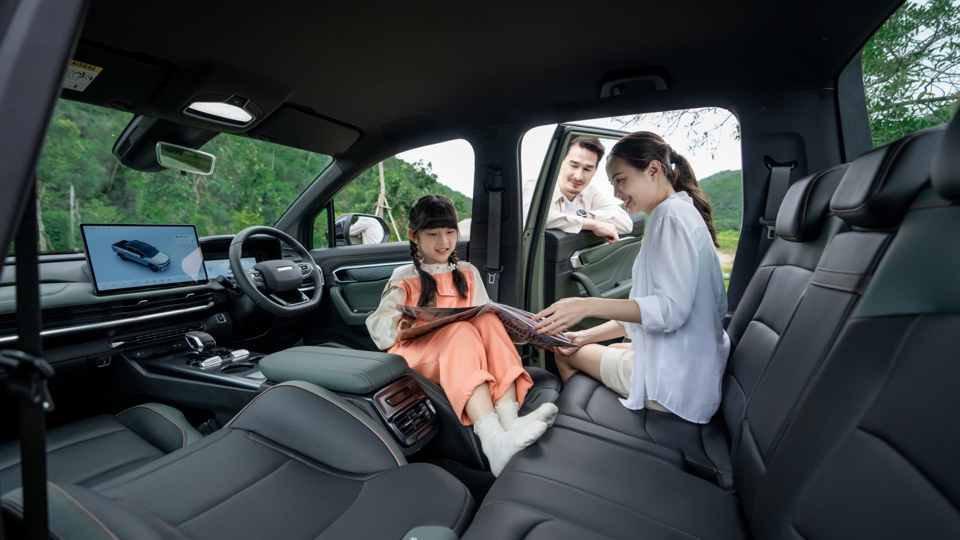 Located in the front trunk, inside the cabin, on the car side, and in the rear cargo area